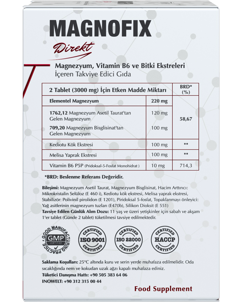 11 yaş ve üzeri yetişkinler tarafından takviye edici gıda olarak tercihen sabah 1, akşam 1 tablet olmak üzere günde 2 tablet kullanılır.